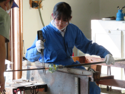 この日、美術専攻1年生のガラス実習を吉野工芸の里 吉野谷ガラス工房 蕾さんで行ってきました。今年は、良い天気で気温も過ごしやすく紅葉も美しいベストコンディションの中での実習でした、その分工房内は暑い中での作業となりましたが、作品に対しても熱く頑張りました。
