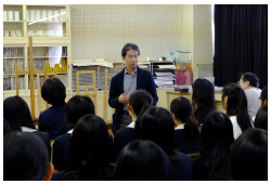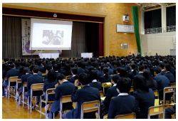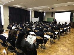 教育ウィーク中のこの日、学校公開日として午前を授業参観、午後より「仕事パネルディスカッション」「台湾彰化市青少年交流事業の報告会」が行われました。