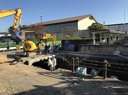 11月11日から12月20日(予定)まで、生徒玄関側の校門付近の進入路拡幅工事が行われます。施工後は、大型バスの出入りがスムーズに行うことができるようになります。