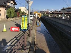 工事のため、生徒玄関側の校門付近の道路が車両通行止めになる時間帯があります。生徒の安全確保のため、PTA役員の方とも相談し、送迎経路を保護者の方にお知らせしております。