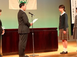 功労者表彰では、石郷岡会長と大音母親委員長2名が表彰されました。また、令和3年度全国高P石川県大会ポスター・シンボルマーク表彰には、本校の芸術コース3年 大杉妃香さんが最優秀賞、同じく金田美憂さんが優秀賞、佳作に大島優奈さんが受賞されました。