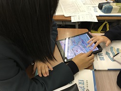 外部で調査をするグループは、日程を詰めたり、パソコンやタブレット、図書館等でさらに情報を集めたりしていました。