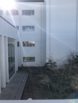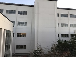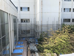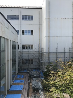 本校の校舎は長寿命化のため、これまで計画的に外壁のリニューアル工事を行っています。今年は、渡り廊下を含めた管理棟と特別棟の中庭に面した壁面のリニューアル工事を行いました。9月中旬から実施していた工事がこのほど終了し、とてもきれいになりました。