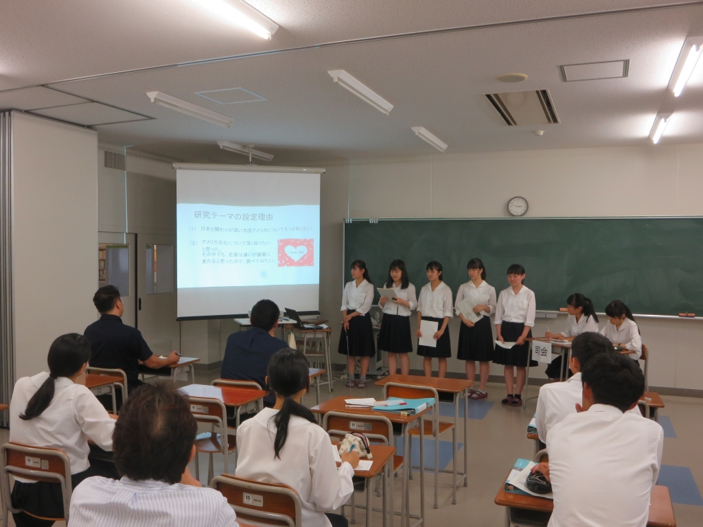 文化部発表会では、まず2年生の人文・理数科・普通科文系・普通科理系から