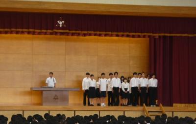 講堂に全校生徒が集まり、1学期を締めくくることができました。