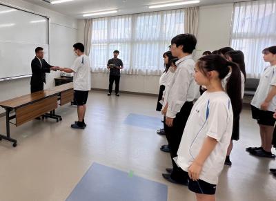 本校では7月10日、体育館にて「部活動壮行式」および「体育祭結団式」を実施しました。