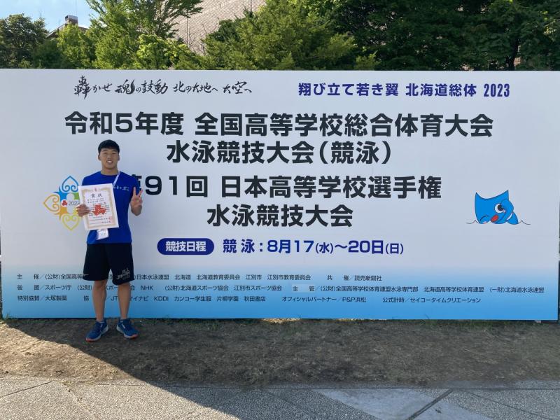 全国高校総体水泳競技大会において、本校3年生の木川友来選手が6位入賞を果たしました!
