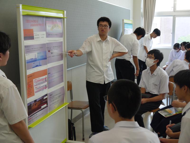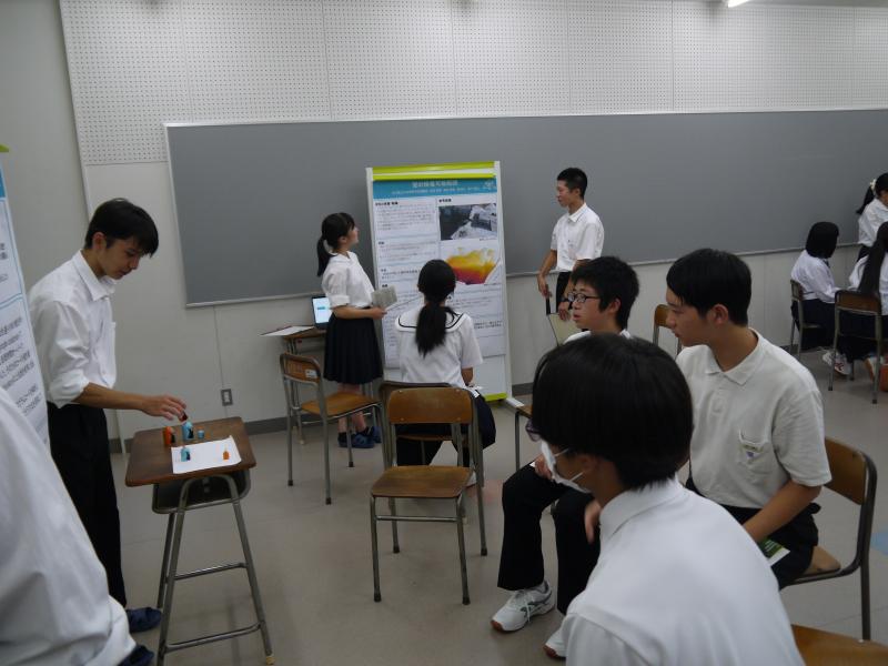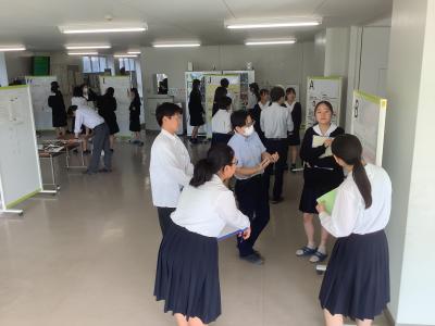 体験学習の普通科体験コースでは、国、社、数、理、英のいずれか一つの授業の体験、また理数科体験コースでは理数科2年生課題研究ポスターセッションを行いました。