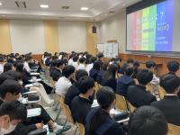 国土交通省の方々の説明により、白山砂防堰堤の意義および手取川ダム管理支所見学を行った。一般人が入ることが出来ない場所に入り、実際の現場を見て、説明していただき、生徒は興味津々であった。自然との共存を目指し、人々の命を守る大きな建設物を目の当たりにし、人間が行える可能性の大きさを感じることが出来た。