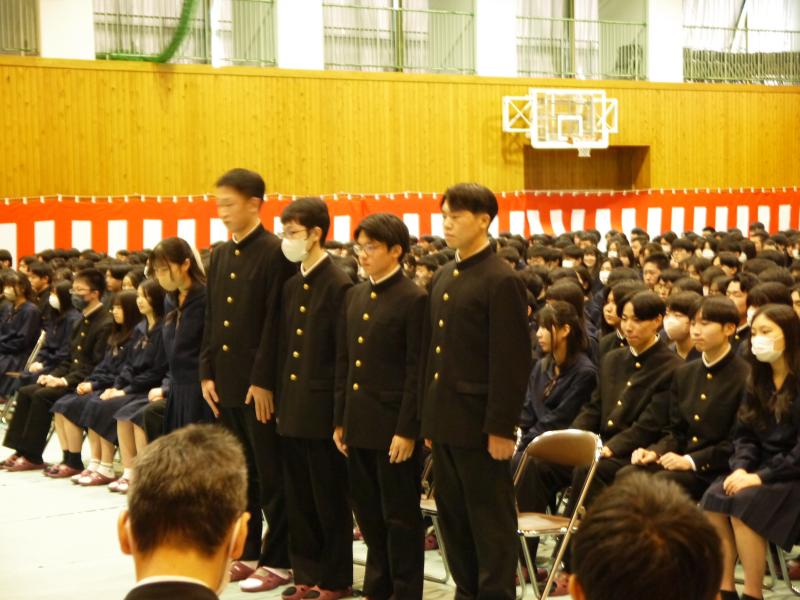 今年は、感染症対策緩和もあり、2年生も出席し、保護者の方には434名のご臨席いただきました。
