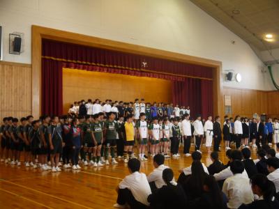本校では7月10日、体育館にて「部活動壮行式」および「体育祭結団式」を実施しました。