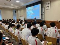 1学期終業式に続いて、ALTのアラン R トーマスさんの離任式が行われました。アランさんは授業はもとより、探究の発表(英語指導)や、英作文の添削などさまざまなことで生徒のために尽力いただきました。