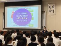 1年生は性の多様性、男女別の身体をもつ人の悩みと対応方法、月経のこと、妊娠や出産など命の誕生にまつわること、2年生は性感染症、望まない妊娠、性暴力・デートDVなどについてお話をいただきました。