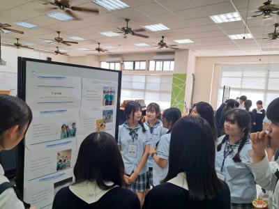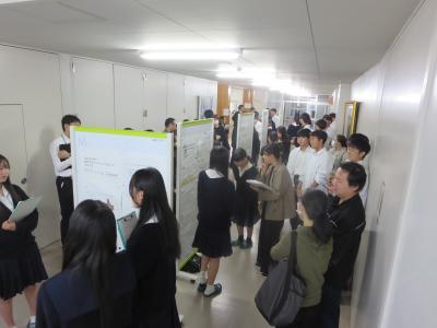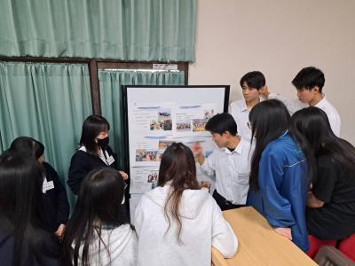 本校の生徒たちは、自己に関するプレゼンと日頃取り組んできた課題研究の成果を発表しました。限られた時間の中で工夫しながらポスターを作成し、英語で発表しました。英語での表現力、コミュニケーション能力に磨きがかかる交流になりました。