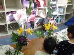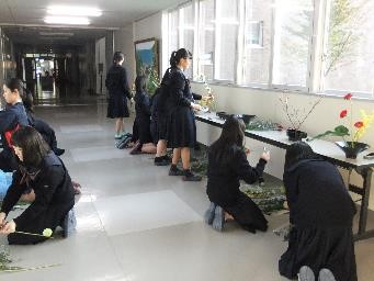 明日からの教育ウィークに向けて生け花の展示を行いました。