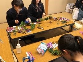 今日は稚松児童クラブでお正月用の生け花指導を行いました。