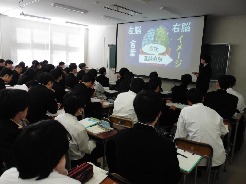 午前中は、4クラスずつに分かれ、多目的講義室で共通テストについての説明、実際に共通テストタイプの問題を解答した上での解説・講義、並びに、「2年生に向けて」というタイトルのもと教育相談室が企画した、新クラスでも各自が豊かな人間関係を形成していくことができる一助となるようなアクティビティに参加しました。