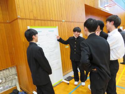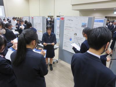 その後、理数科課題研究10テーマを3会場に分かれてポスター発表をしました。