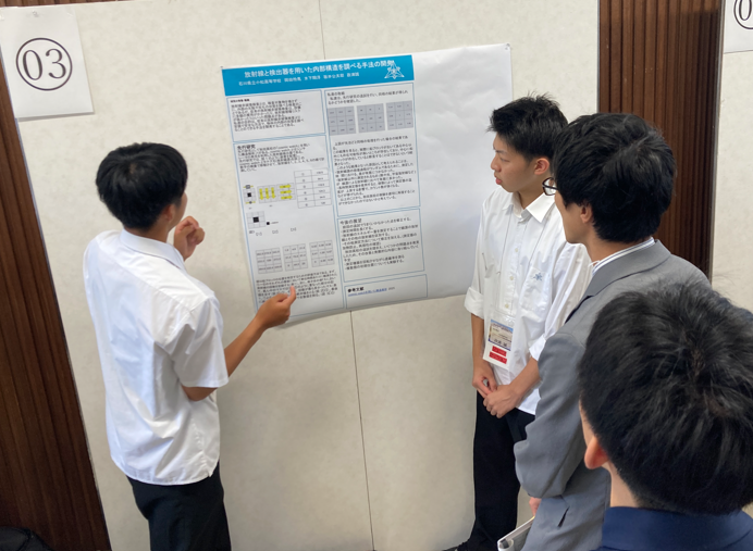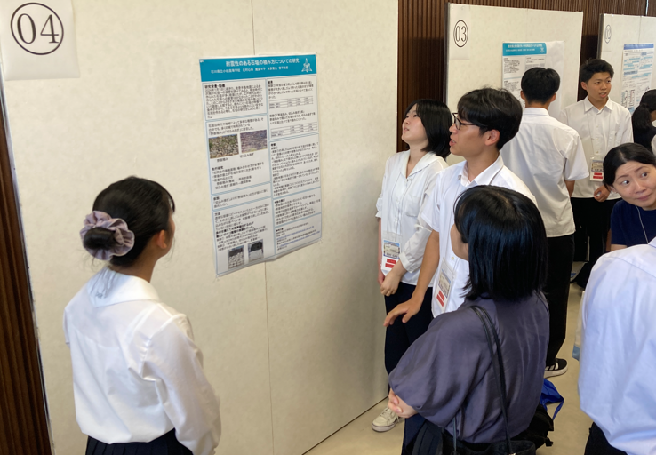 生徒からは、「最後の発表の場となったが、ここまで同じメンバーで研究を続けられたことは本当に良い経験になった。最初はどうやって行こうかと先行きが見えない中で、今回までに多くの気づきと改善、発展をすることができた。まだまだ改善の余地があるが、このような大きな舞台で発表し、全国クラスの他の生徒の発表も見学することが出来た。この全国発表はとても価値ある経験だと感じた。今後も研究などに携わる機会があると思うので、この経験を忘れずに大切にしていきたい。全国から集まった生徒や先生と研究について議論する中で、新たな発見があった。」という声が聞かれました。