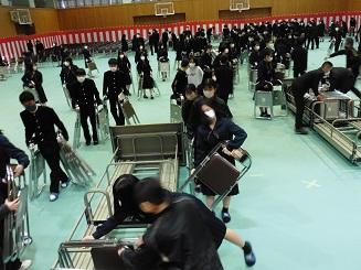入学式場の後片付けは、例年小松高校1年生の役割となっています。協力して頑張ってくれました。今後も各行事の際はお願いします!