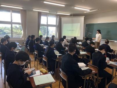「自分たちが住む地域に目を向けるとともに将来の生き方を考えよう」をテーマに、1年生は、地域(地元)で精力的に活躍されている方のお話を9月、10月に伺います。