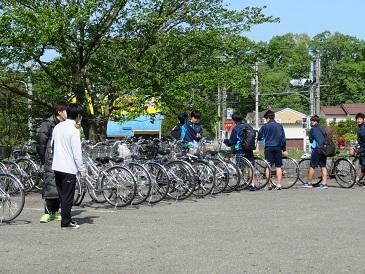 【自転車で来た生徒もかなりいました → 上って左の方へ行くと集合場所です → 集合の様子です】