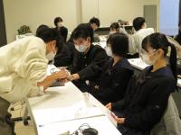 宮田先生からは、工学的なアプローチで創薬に取り組む「ナノ医薬」の研究に関して、実験器具や動画データなど最先端の情報を高校生に分かるよう丁寧にお話していただきました。また、東京大学工学部の紹介や、宮田先生ご自身の受験時の話などもしていただき、高校生は多くの刺激を受けることができました。