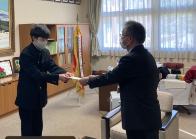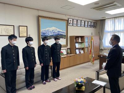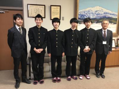 日本数学A-lympiadで優秀賞を受賞し、日本代表として国際大会(オランダ)への派遣が決まっている4名の生徒に対して学校より激励費が交付されました。垣地校長先生より激励の言葉とともに激励費が贈呈され、2年生4名は感謝の言葉とともに国際大会への意気込みを語りました。