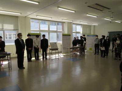 1月13日(金)2年生での課題研究の集大成として、普通科理系の課題研究の発表会が行われました。数学、物理、化学、生物、体育の5分野の研究について、自分たちが設定したテーマに関する発表を行いました。この日は講評者として、石川県立大学から 小栁 喬先生、長野 峻介先生、中谷内 修先生がポスター発表会に参加して下さいました。専門的な観点からの助言や講評を頂くことができて、生徒達にとって非常に有益な時間となりました。