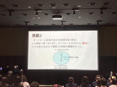 また、同日に「いしかわ高校生物のつどい」が金沢泉丘高校で開催され、「粘菌のエサの感知についての研究」班が口頭発表を行い、ワークショップにも参加しました。
