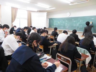 4月18日(火)理数科3年「課題探究Ⅲ」の開講式が行われ、それに続く授業で微分方程式の解法を学びました。今後はこの考え方を用いて、領域融合の探究活動を行います。