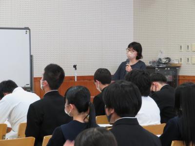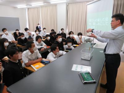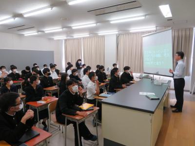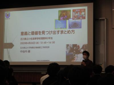 4月26日(水)、2年普通科理系対象の「課題探究」において、石川県立大学の中谷内修先生をお招きし、課題探究についての特別講座が行われました。中谷内先生からは、課題探究の意義や方法、注意点などを丁寧に説明していただきました。生徒は次回から探究活動をより充実したものにするため、メモを取りながら一生懸命学んでいる様子でした。