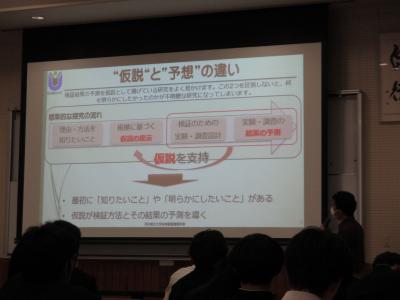 生徒達は、探究の意義や価値、問いの細分化、適切な仮説、テーマ設定の足がかり等、2年生での課題研究を始める前に、重要なことを沢山教えていただきました。