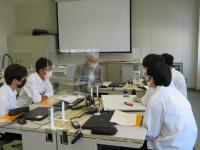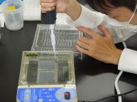 県立大学 中谷内先生の講義 電気泳動実験の様子 その1