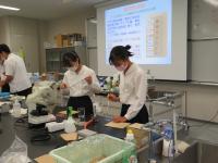 A班は、1日目に食品に含まれる微生物についての講義、食品サンプルから抽出した微生物の培養を行い、2日目に前日仕掛けた食品サンプルから抽出した微生物の生菌数の確認と検鏡を行いました。生徒達は、顕微鏡で見た染色した菌の食品毎の違いに感動し、抽出した菌を顕微鏡で見せ合ったり、写真を撮ったりして、大変盛り上がりました。