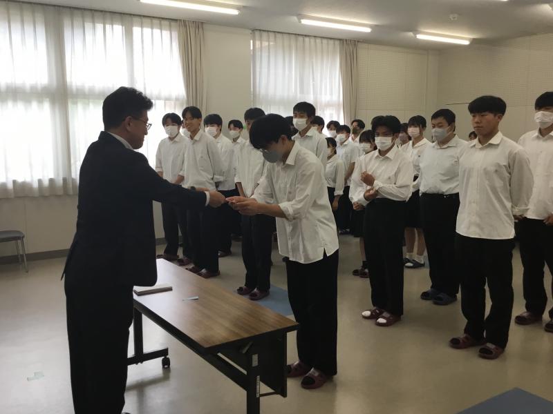 各競技の北信越大会へ出場する部活動に対して、6月13日(火)の昼休みに校長先生から激励のことばがあり、賞賜金が渡されました。各選手の健闘をお祈りいたします。