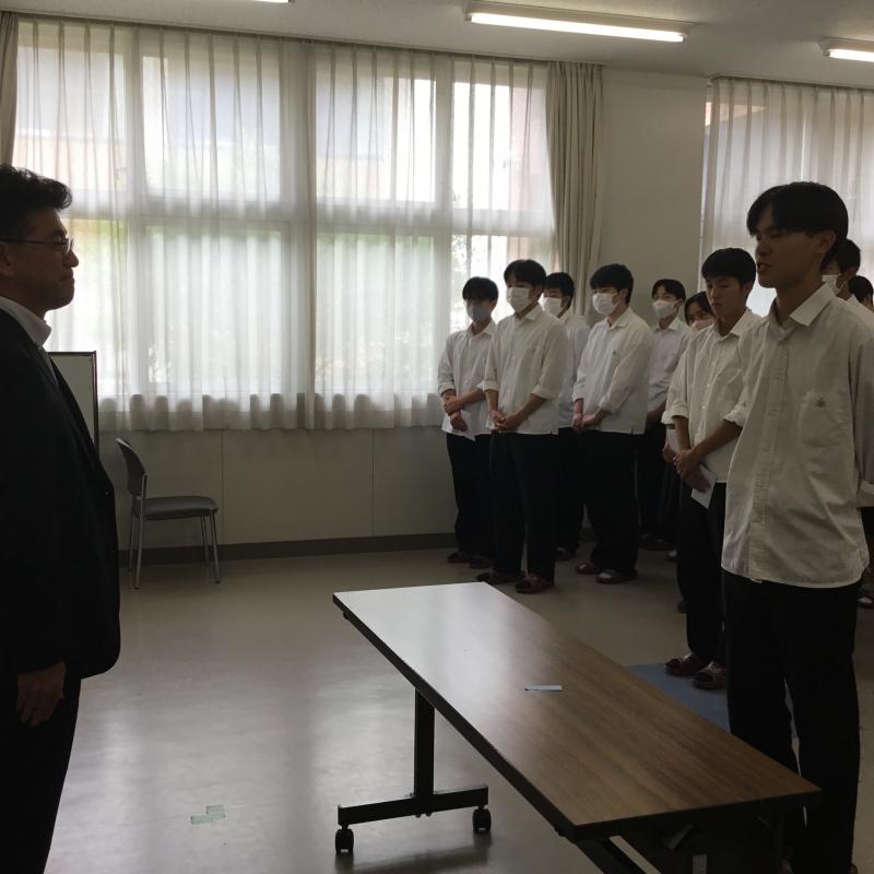 カヌー部、ボート部、放送部、将棋部、かるた部、理化部の皆さんに7月12日(火)の昼休みに校長先生から激励のことばがあり、激励金が渡されました。各選手の健闘をお祈りいたします。