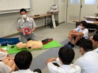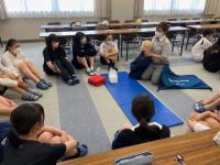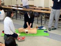 今回は、心肺蘇生法とAEDの使い方を中心に実習しました。知識はあっても、実際にやってみると思うように動けず、やってみることの大切さを実感した生徒が多かったようです。もしも誰かが倒れている場面に出会ったら、①自分の命を守ること、②119番通報、③胸骨圧迫を行うことが大事であることを学びました。