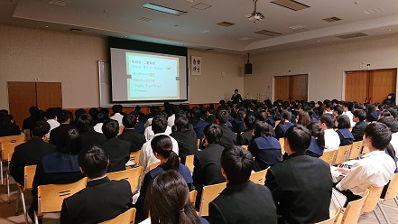 本日7限目、1年生全員を対象に学部学科説明会が行われました。講師に金沢大学学長補佐 学生募集・高大接続担当 山本茂教授をお招きし、大学とはどんな場所なのか、どんな学部学科があるのかを具体的にお話いただきました。大学はゴールではないという話を聞き、1年生がどのように感じ、どのように考えていくのかが楽しみです。今回の説明会を通して、1年生全体の進路への意識が高まることを期待しています。
