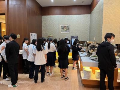 2年生人文科学コース40名、全員元気に朝食を食べております!