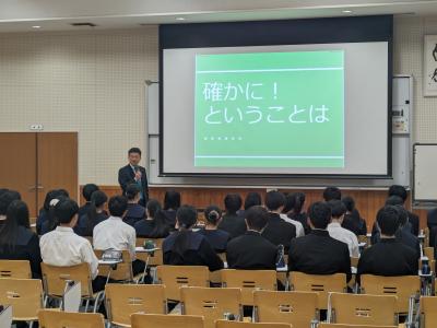大学院という場所がどのような場所なのか、また、経済とは何か、その歴史や成り立ちから講義していただきました。授業後の質問コーナーでは、「吉川さんが留学したきっかけはなんですか?」といった今後の進路を見据えた質問や「日本の経済は復活しますか?」といった経済について気になることを意欲的に尋ねる生徒の姿も見られました。分かりやすい講義、丁寧な質問への返答をありがとうございました。貴重な経験をした生徒たちでした。