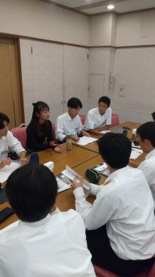 夕食後は、人文科学コースの卒業生5名をお招きし、懇談会を行いました。人文科学コースで良かったこと、受験や勉強の仕方、大学生活についてざっくばらんに話し合うことができました。