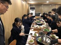 12時40分頃飛行機が無事ソウルに到着しました。現地添乗員のキムさんと合流してから、バスでテジョンに移動しました。途中で立ち寄ったサービスエリアで、ウォンを使って初めての買い物をし、名物の「くるみまんじゅう」などを味わいました。夕食はサムギョプサルを食べました。みんな元気いっぱいで、あっという間にお肉を食べ終わり、楽しい会話で盛り上がっていました。