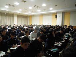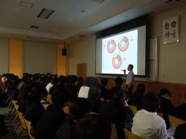 キネシンやATPアーゼ、DNAポリメラーゼ、鞭毛モーターなどの生体内における分子モーターについての最先端の研究についてわかりやすく説明してくださいました。また、東北大の紹介や研究者についても丁寧に説明していただきました。多くの生徒が、受験勉強へのモチベーションが上がったと話していました。