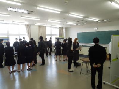 3月16日(水)5,6限目に、理数科2年生が1年間取り組んだ課題研究を英語で発表しました。今年度より実施形態をポスター発表の形式に変更し、北陸先端科学技術大学院大学の國藤進先生、助教・講師の先生方、大学院生(留学生)、他校のALTの先生方をお迎えして発表会を開催しました。多くの生徒が全く、あるいはほとんど原稿を見ることなく、自信をもって堂々と発表していました。質問に対しても臨機応変にしっかりと対応できていました。生徒達からは、「生の英語を聞いて、その場で英語で答えるということはなかなか経験できないし、とても良い機会だった。」「相手に伝わるように、思い切って英語で会話することができた。」等、とても充実した時間だったという声が多く聞かれました。長年小松高校生を指導して下さっているALTのマーカス先生は、「今までの発表会の中で一番良かった。発表はもちろん、質疑応答もリラックスして、自然に相手とやりとりができていて、素晴らしかった!I'm so happy!」と言ってくださいました。6限目からは理数科1年生も参加し、「とても難しかったが、来年自分たちも頑張りたい。」という声が聞かれました。