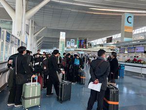 7月に小松を訪問してくれた韓国の生徒8名が横断幕を持って、私たちの到着を待っていてくれていました。