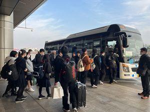 リムジンバスに乗るところ 羽田で主国審査が終わって休憩中