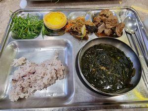 野菜は食べ放題で、キムチやサラダ、ココナッツミルクのデザートや、フライドポテトもありました。