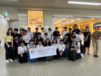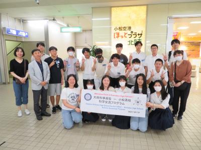 7月25日(木)3日間の国際科学交流を終えた韓国大田科学高校のみなさんが帰国前に小松高校に来校しました。交流してきた28Hの生徒も沢山集まり、校内を案内した後、図書館でお別れ会を行いました。韓国の生徒さんたちがこの3日間の科学交流についての感想を英語で発表してくれて、記念品を渡したり、記念写真などを撮り合ったりした後、韓国の生徒さんたちは小松高校から小松空港へ向かい、帰国しました。