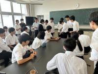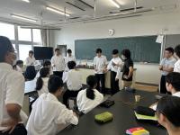 7月28日(金)探究活動の普及を目的とした本校「究める探究教室」事業の一環で、理数科1年の生徒が、国府中学校、松東みどり学園をそれぞれ訪問し、中学生の探究活動へのサポートを行いました。